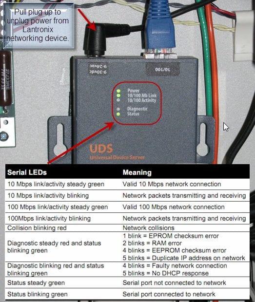 The diagram below explains how to power cycle the Lantronix.