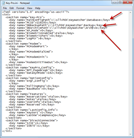 The Key-pro.ini configuration file is stored as shown below and must be modified on EVERY client.