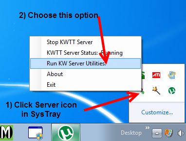 In the System Tray on the Server, right click on the Server icon and then “Run KW Server Utilities”